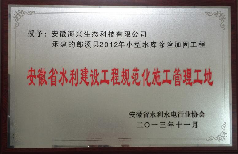 2013年度在安徽省水利水電行業協會組織評選優質工程中,該工程被評為“安徽省水利建設工程規范化施工管理工地”稱號。