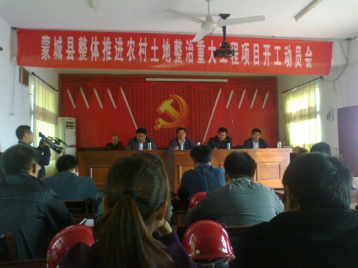 2011年10月18日9:00時,在蒙城縣小澗鎮組織召開了蒙城縣小澗鎮韓橋基本農田土地整治項目開工動員會。會上縣土地整理中心領導及小澗鎮分管領導就該工程的特點、進度和質量標準作出了具體部署和要求,該項目同時于上午10時18分正式破土動工。蒙城縣土地整理中心、蒙城縣小澗鎮人民政府等相關領導、各參建企業有關施工負責人及技術人員參加了動員大會。
