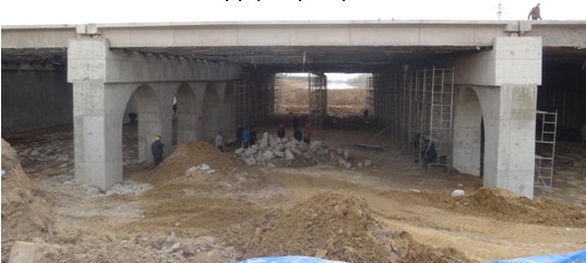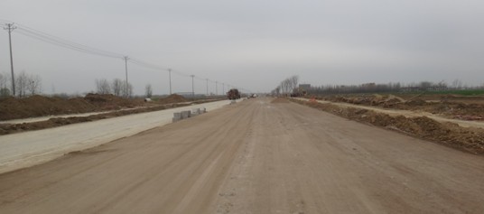 因本項目為蒙城縣的重點項目,合同簽訂后,我公司積極響應建設單位號召,面對施工任務繁重,工期緊的情況,項目部制定了完備的組織計劃,自開工以來,項目施工人員加班加點,搶晴天、戰雨天,夜間加班加點搶抓進度。截止目前,路面水穩層已基本鋪設完畢,橋梁主體結構已經基本完工,現正準備瀝青面層的攤鋪工作。
