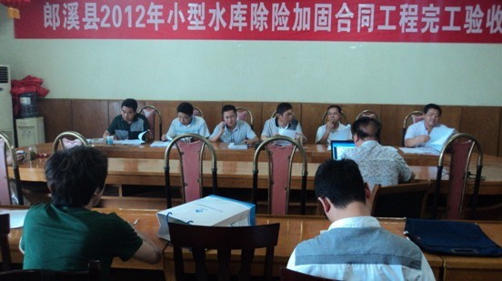 2013年6月21日,郎溪縣2012年小型水庫除險加固工程完工驗收會在郎溪縣水務局會議室召開。縣水務局副局長何明德、主任鐘玉榮、朱曉東、防辦主任席青松等領導以及項目所在地鎮、鄉負責人參加了驗收會。