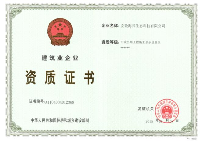 2015年1月16日,從省住建廳傳來喜訊,經國家住房和城鄉建設部核準,我公司晉升為市政公用工程施工總承包一級企業。標志著公司已具備承擔各類市政工程施工的資格和實力。