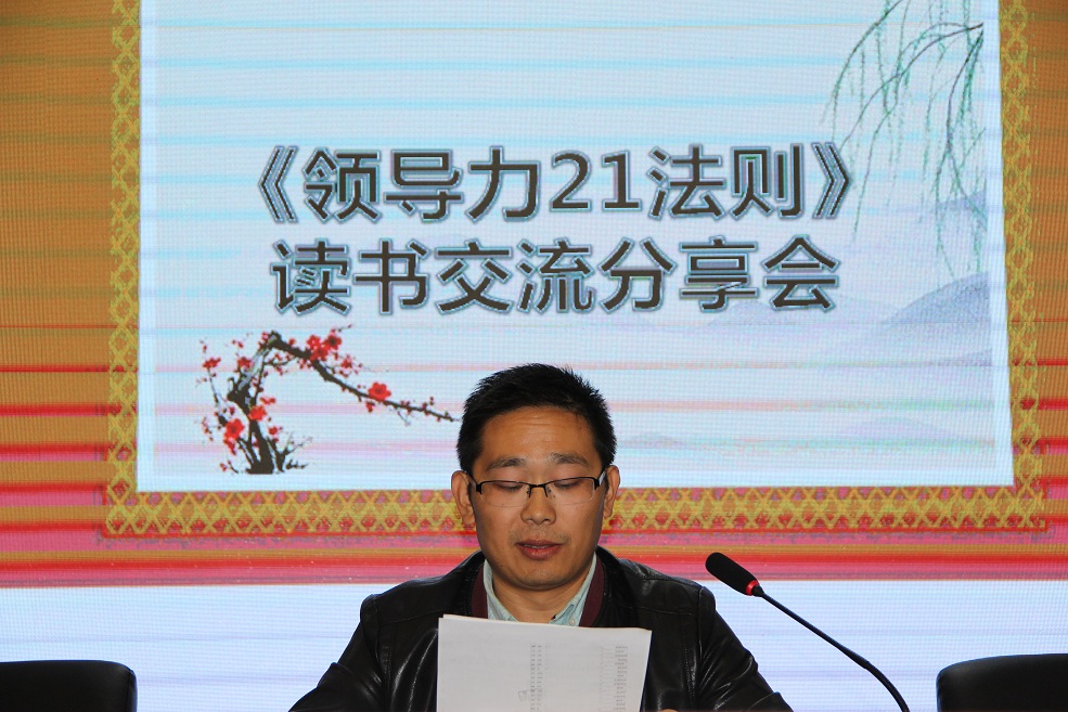 2017年10月14日下午,在集團總部五樓培訓中心,由集團發展戰略中心人才資源部組織了一場大型的讀書分享活動---《領導力21法則》讀書交流分享會,《領導力21法則》是全球第一領導力大師---麥克斯維爾博士40年研究的集大成之作。書中每一條法則都有相應的事例進行闡述,通熟易懂,吸引了公司全員都進行了研讀。