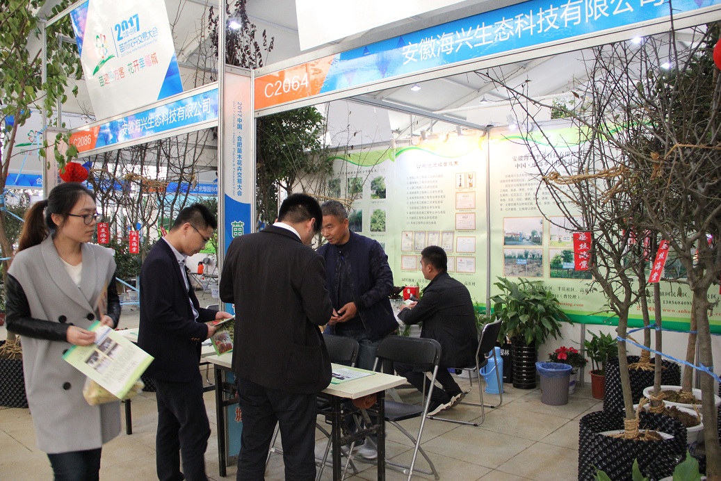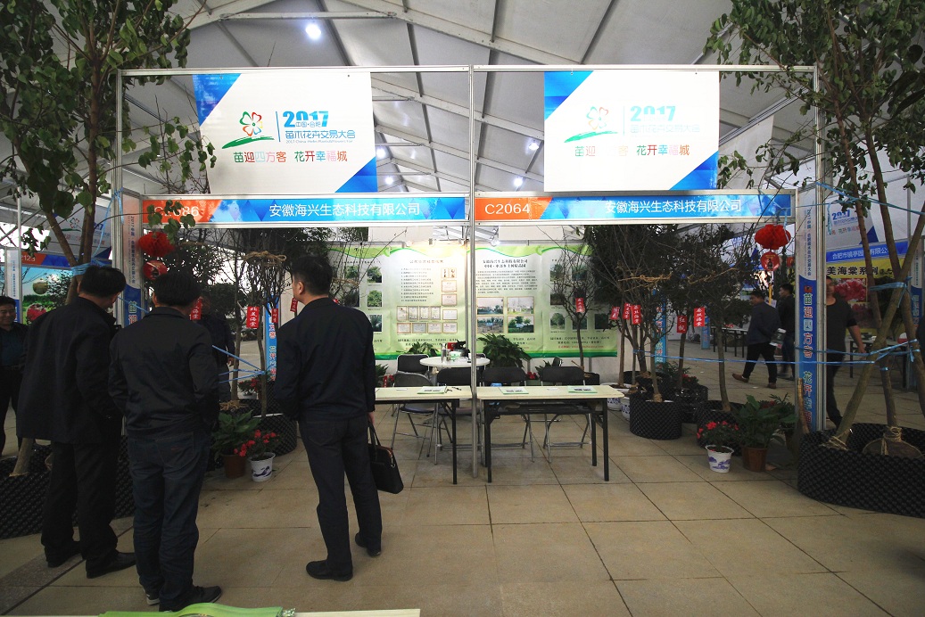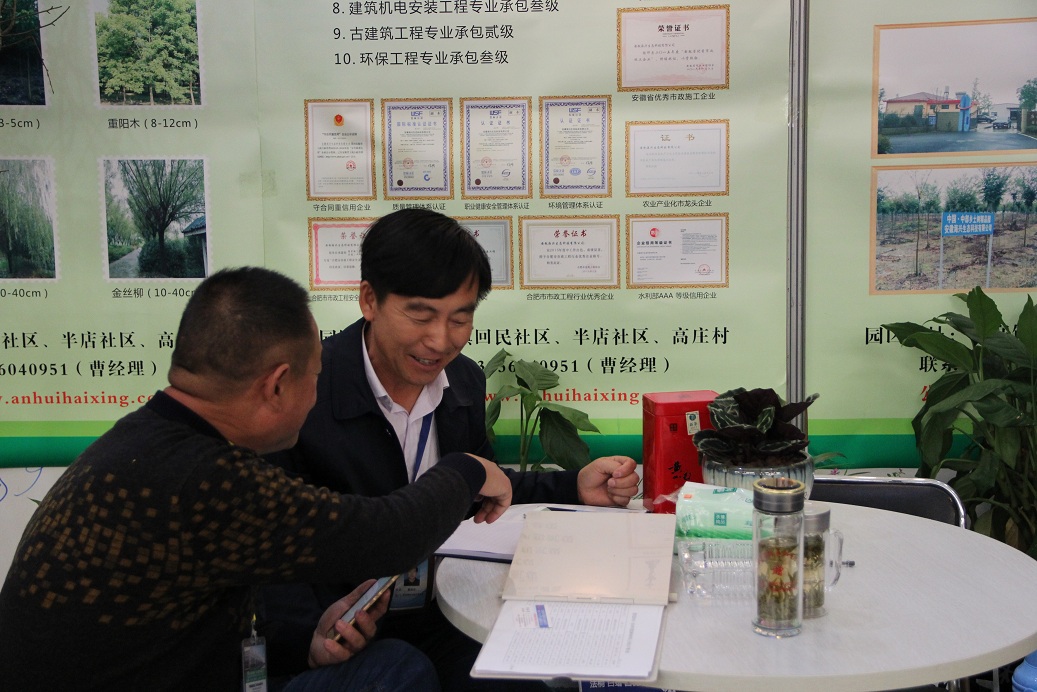 我公司投資建設的“中國·中部鄉土樹精品園”是合肥市本土企業中鄉土喬木樹種最多、標準最高、管理規范的苗木園區,在企業標準展區的展會現場,我公司展現了創精品園區的企業風采和主動、熱情、周到的服務品質。展會期間,集團公司董事長曹張伯同志攜園林板塊負責人曹總、施總等人到場,對我公司的展臺參觀指導,并對展銷會上同行企業展覽的優質苗木進行走訪和取經。