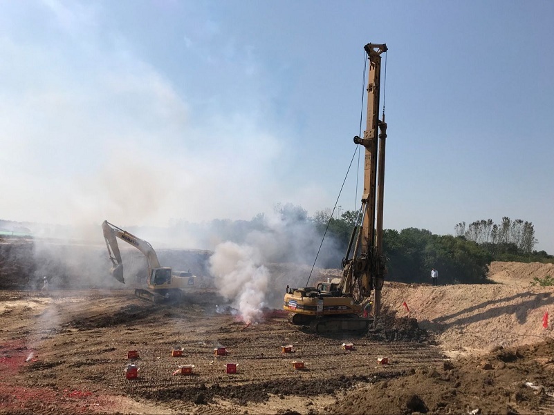 10月3日上午9點(diǎn)16分,國(guó)際大道二標(biāo)(玉蘭大道-三河路)工程施工現(xiàn)場(chǎng)機(jī)械攢動(dòng),鞭炮齊鳴,伴隨著項(xiàng)目負(fù)責(zé)人的一聲令下,第一根樁基正式開鉆,拉開了五老堰河3*16m空心板梁橋樁基礎(chǔ)施工的序幕。