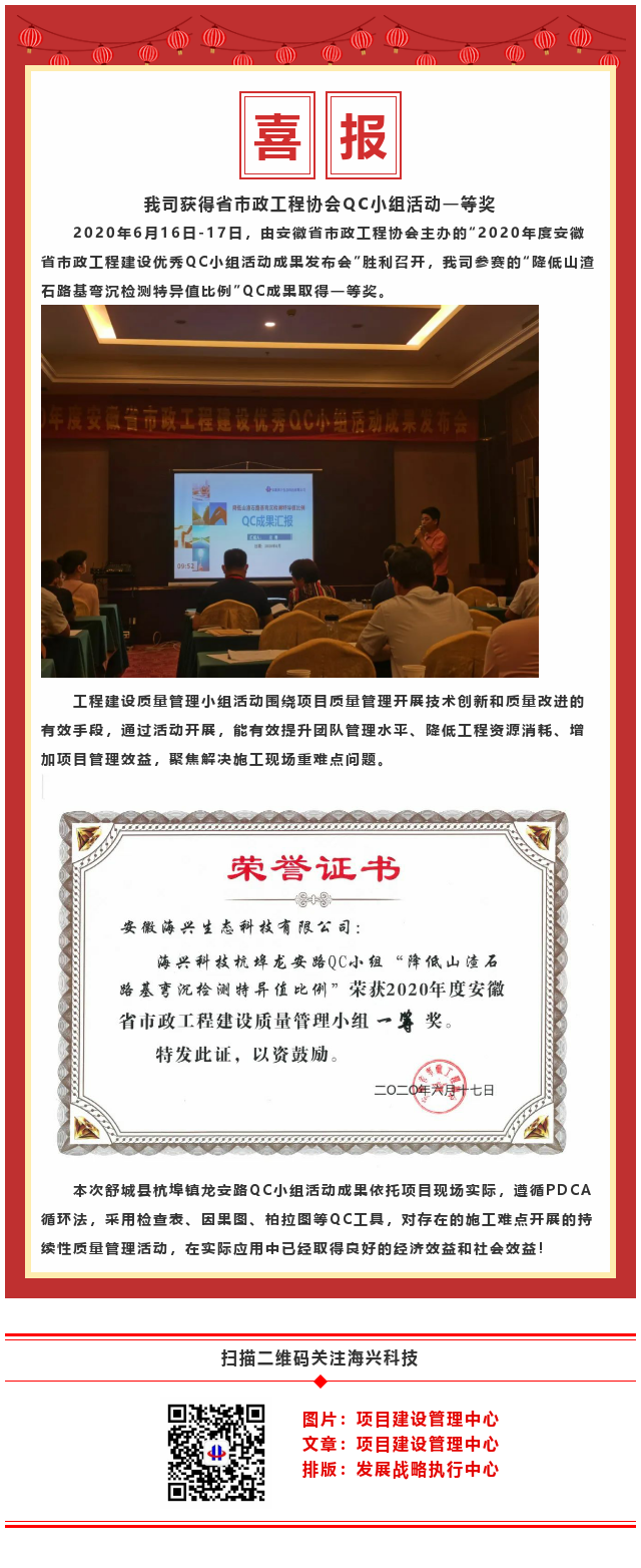 賀我司獲得省市政工程協(xié)會QC小組活動一等獎