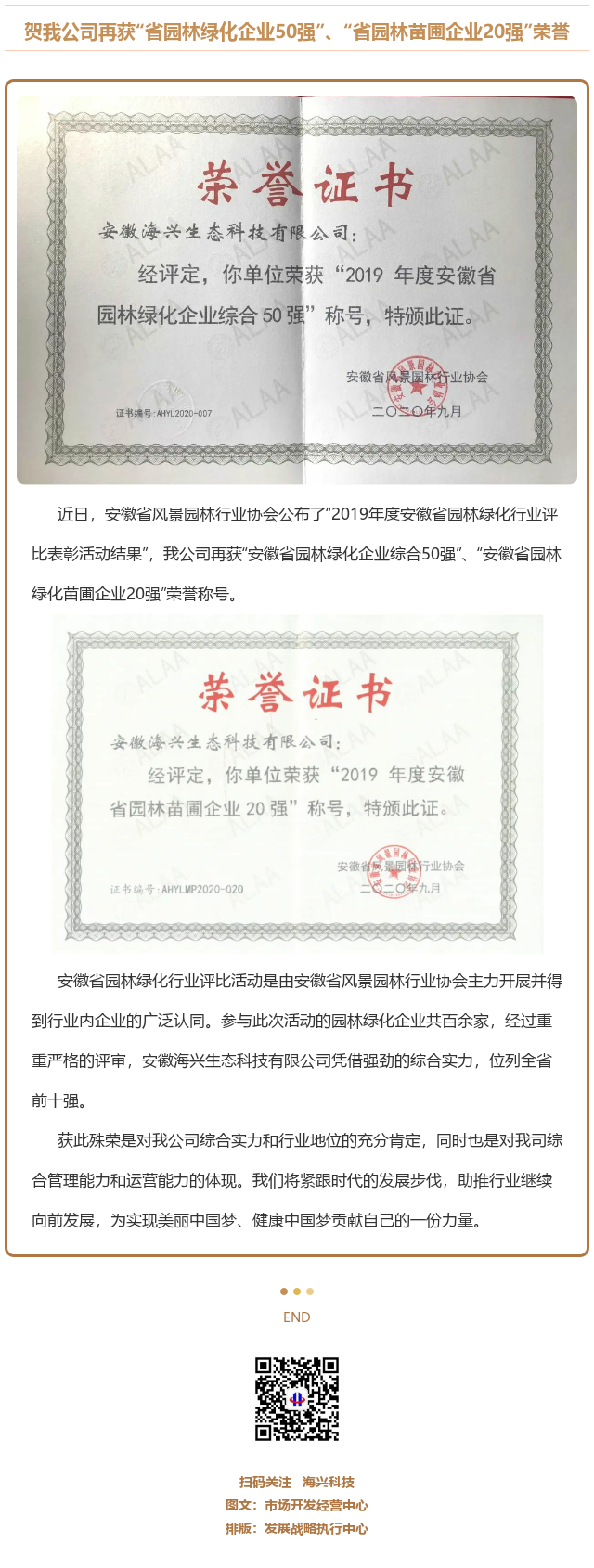 賀我公司再獲“省園林綠化企業(yè)50強(qiáng)”、“省園林苗圃企業(yè)20強(qiáng)”榮譽(yù)