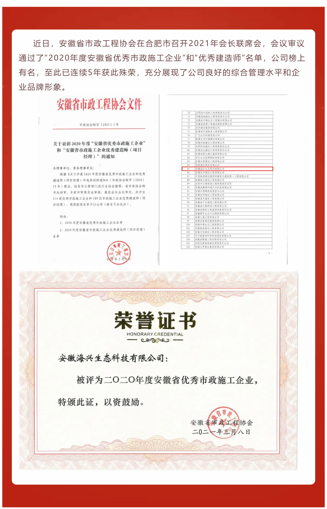 熱烈祝賀公司再獲省優秀市政施工企業稱號