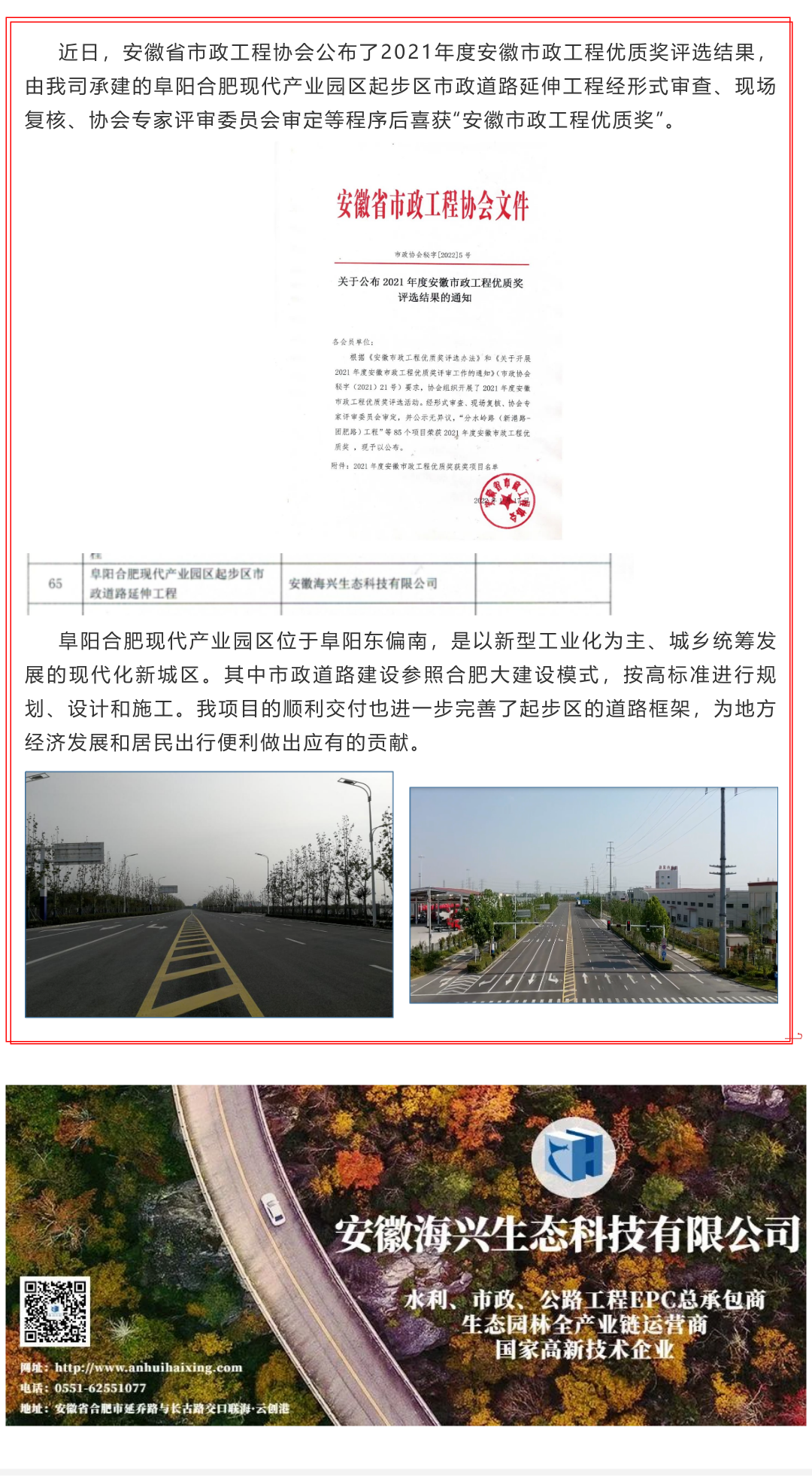賀我司喜獲安徽市政工程優(yōu)質(zhì)獎