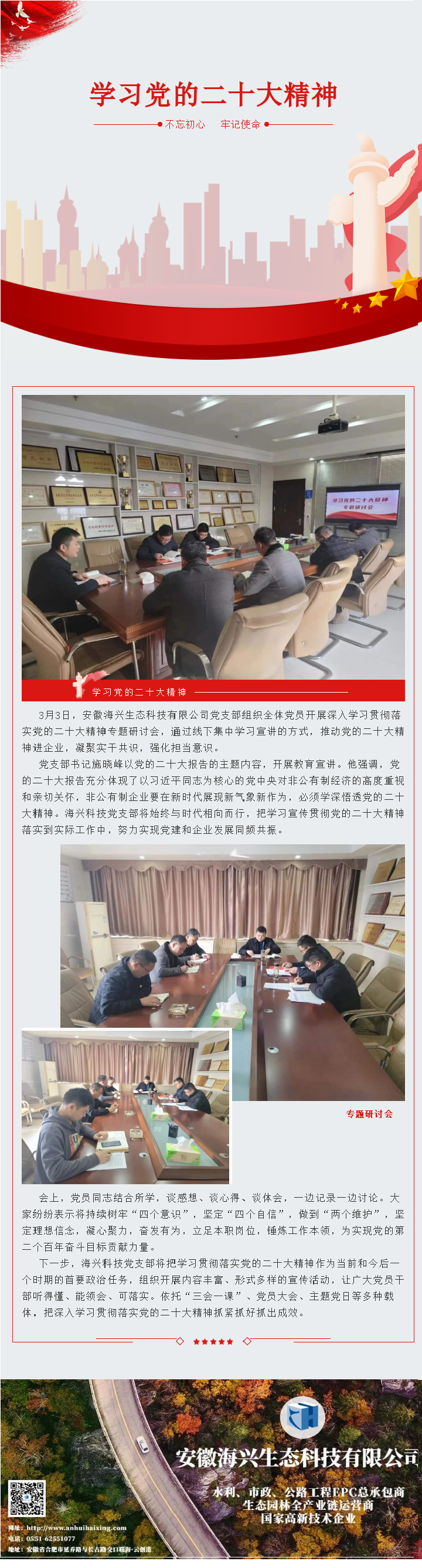 安徽海興生態(tài)科技有限公司黨支部集體學(xué)習(xí)黨的二十大精神
