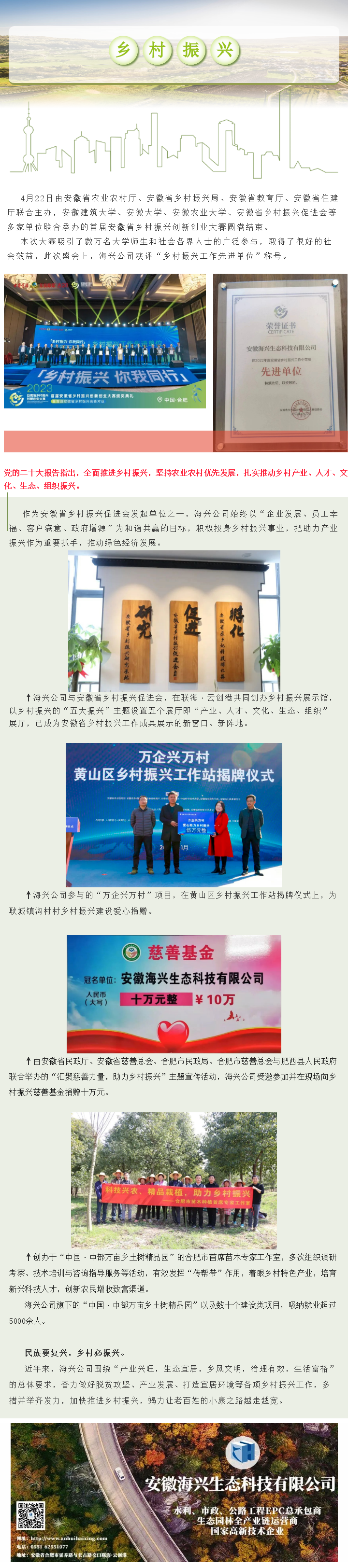 熱烈祝賀海興公司榮獲首屆安徽省鄉村振興創新創業大賽“鄉村振興工作先進單位”稱號