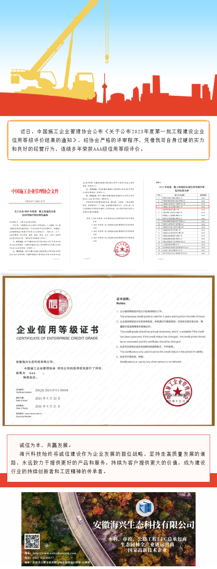 賀我司再獲中國(guó)施工企業(yè)管理協(xié)會(huì)AAA級(jí)信用等級(jí)評(píng)價(jià)