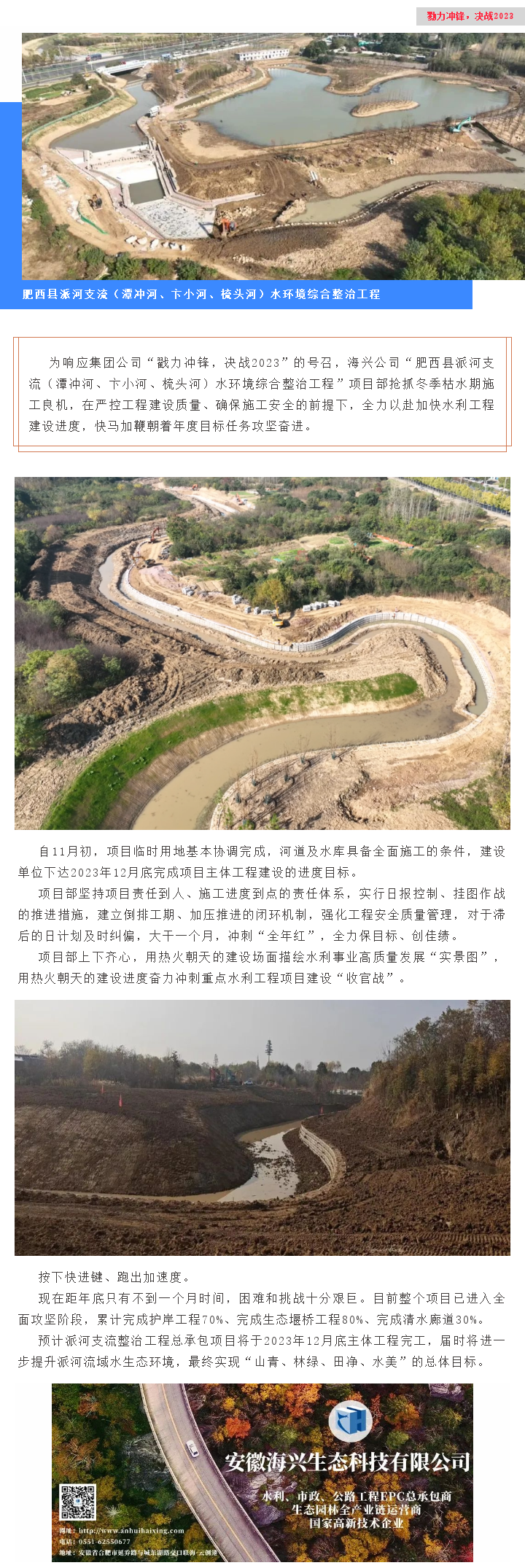 肥西縣派河支流水環境綜合整治工程攻堅奮進,沖刺“全年紅”